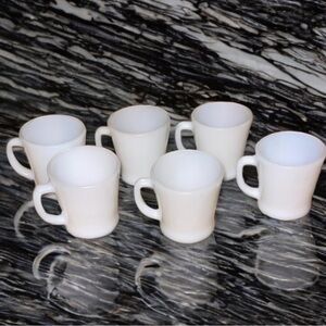 🏡6 Fire King Antique D-Handle Milk Glass White Coffee Mug Set