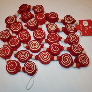 6 Foot Peppermint Swirl Candy Garland Felted Wool Red White Holiday Christmas