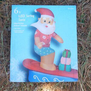 6 Ft Hang Ten Surfing Santa LED Christmas Inflatable Airblown Beach Longboard