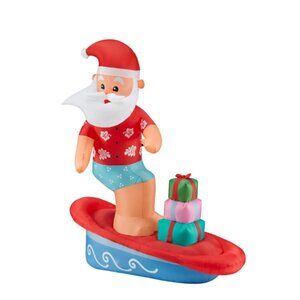 Step up your celebratory decor with this Airblown inflatable Santa decoration. Surfin' the waves, this Father Christmas figure spreads some festive humor for your indoor or outdoor party, while the self-inflating design supports fast, effortless installation. The easily collapsible design makes light work of storage, and the 6-foot height delivers a life-size Santa accent to delight your younger guests. Arriving with included ground stakes and tethers, this Airblown inflatable Santa decoration stakes firmly on your yard for safety and stability, and the pre-lit LEDs add sparkle.