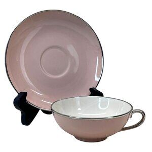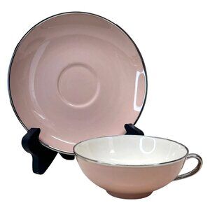 6 Gladding McBean Franciscan China Magnolia Pink Platinum Trim Cups & Saucers