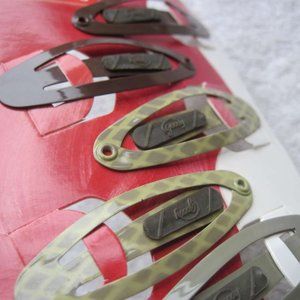 Package of 8 hair clips in your choice of the Black, Blonde and Brunette, or Pink and Red color sets pictured. They have small rubber grips on their metal that securely clip and keep them into place.