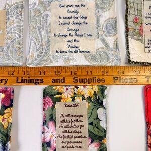This is a unique lot of 6 handcrafted prayer quilts. The quilts are handmade in the United States using the patchwork technique. They are made of cotton material and feature a multicolor design. Each quilt is a one-of-a-kind piece that carries a special meaning and significance for prayer.