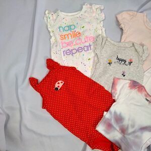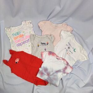 ⭐ 6 Infant Baby Girls One Piece Bodysuits Lot Bundle Set Gerber Carter's 12 mo