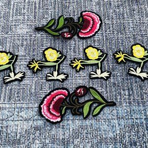 6 Iron On Patches Red and Yellow Flowers Patches for Craft Cloth Embroidery