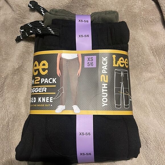 #6 Lee Youth 2-pack Jogger Black & Green Medium 14/16 Rugged Knee Sweatpants