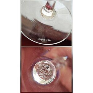 Elegant Lenox Unity Gold wine glasses with twisted stems. Crafted in the USA, these crystal goblets are marked with 2 different Lenox marks.