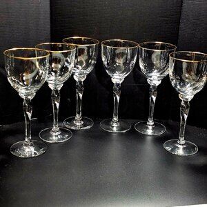 6 Lenox Unity Gold Wine Glasses 7.5" USA crystal goblets twisted stem marked 198