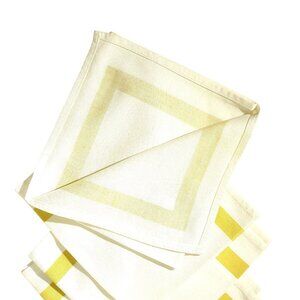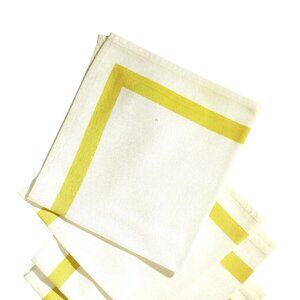 6 Linen Napkins Ivory Green Band Classic Farm Country Retro Vtg