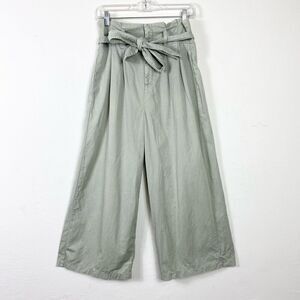 (6 Long) American Eagle Sage Green High Rise Cropped Ankle Wide Leg Belted Pants Size 6T