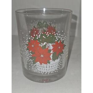 6 Luminarc Poinsettia Basket Christmas Rocks Glasses Lowball 12 oz