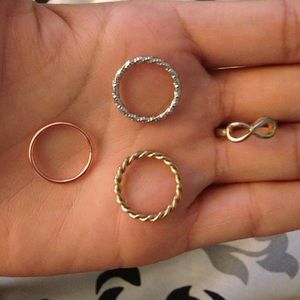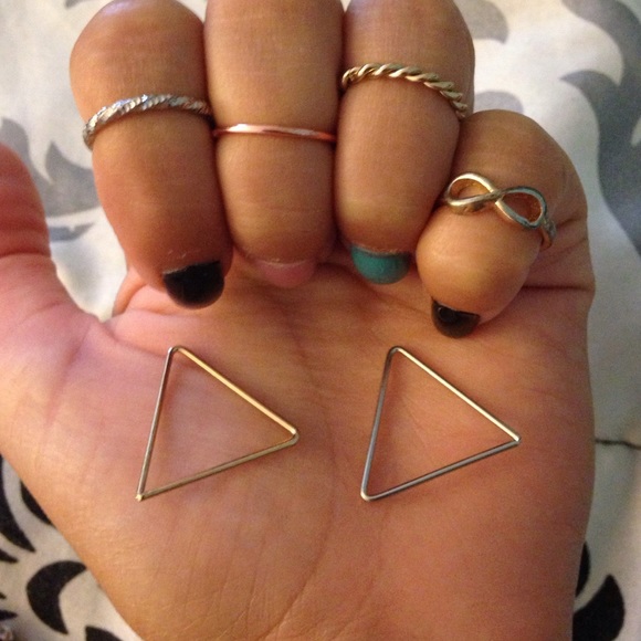 2 Triangle Rings (silver & gold). 1 rose gold. 1 gold. 1 silver. 1 gold infinity ring. Cheaper on Merc 😊