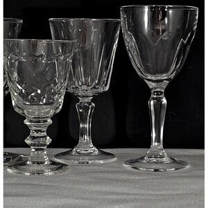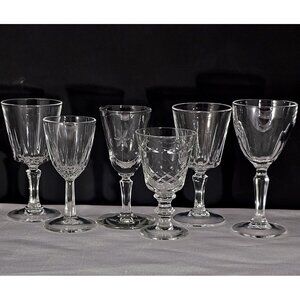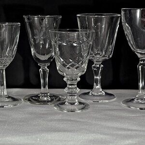 6 Mismatched Vintage Cocktail Glasses Etched Floral romantic dinner drinks party