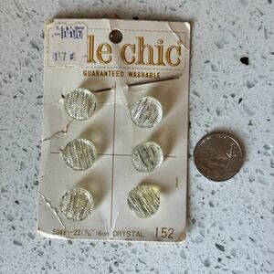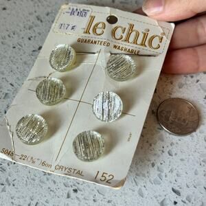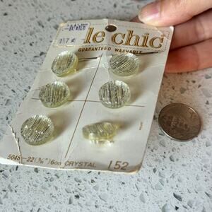 6 NEW 50s Vintage Le Chic Buttons On Card Crystal Clear Silver Round Shank 9/16"