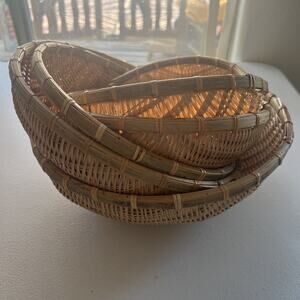 6 Nesting Brown Rounded Woven Wicker Rattan Basket Vegetable Fruit Boho Country