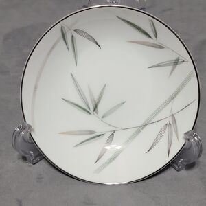 6 Noritake Bambina Berry Dessert Bowl 5.5in White Green Silver Bamboo MCM 5791