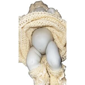 6" Old Antique #9 Baby Bisque Jointed Doll in Beautiful Crocheted With Nice Bed