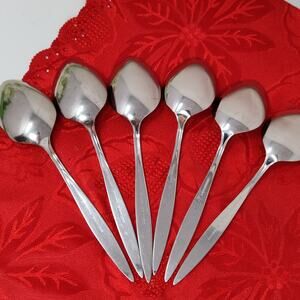 6 Oneida Oneidacraft Deluxe Stainless Wintersong Table Spoons