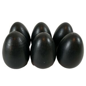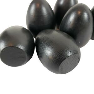 6 PCS Unpainted Black Wooden Fake Easter Eggs Craft Blank Paintable Flat Bottom