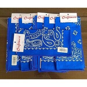Vintage Craftmart's 6 Pack Bandana in Royal Blue Paisley is a versatile accessory suitable for both men and women. Made from 100% cotton, this double-sided scarf can be worn in various ways to cover the head, neck, or face. The paisley pattern adds a stylish touch, making it suitable for all seasons. Perfect for adding a pop of color to your outfit while keeping you warm in colder weather or protecting you from the sun in warmer temperatures. This bandana is a practical and fashionable addition to your wardrobe.
