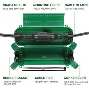 🧿With the 4 corner clips, snap-lock lid, and rubber gaskets, this outdoor extension cord cover box is IP44 waterproof. Perfect to seal 14/16/18 gauge cord, braided cable and flat wire.