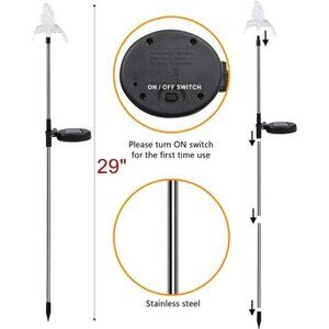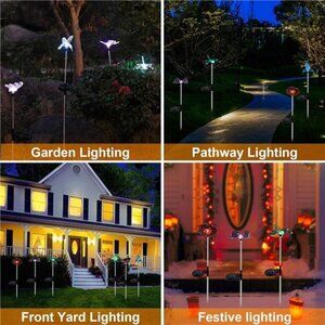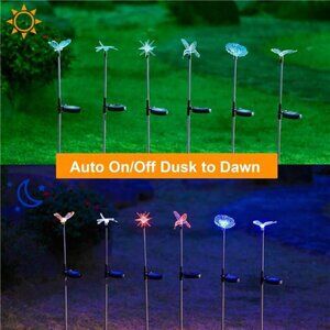 🧿6 Pack Solar Garden Stake Lights: Crafted from high quality plastic and stainless steel, the 6 pack solar garden lights with vivid clear figurines of butterfly, dragonfly, hummingbird, bee, star, and sunflower are a beautiful decor to your garden or space. These decorative garden stakes are good foil to the spring atmosphere.