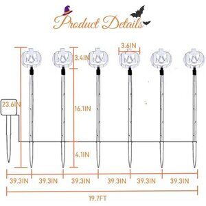 【Upgraded Halloween Decorations Lights Outdoor】6-IN-1 Halloween 3D pumpkin color changing stake lights, each pumpkin stake is 23.6 inches high, the distance between each tree stake is 1m/3.28ft, lead wire is 1m/3.28ft. This is a good choice to decorate your Front Porch for Welcoming Trick-or-treaters or Party Guests,and add Festive Touch for Halloween.