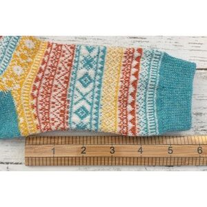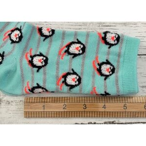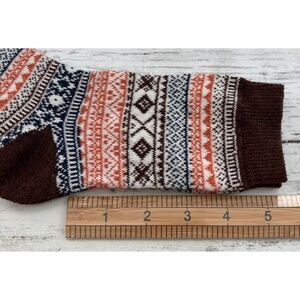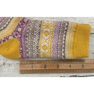 1 pair Holiday Penguin Novelty Crew Socks and 5 pair Vintage Geometric Print Winter Wool Socks. The gold pair was laundered and tried on otherwise they are in NWOT condition. Please see pictures.