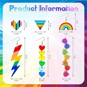 6 Pairs Rainbow Earrings Pride | Rainbow Drop Earrings for Women