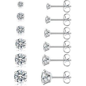 6 Pairs Stud Earrings Set, Hypoallergenic Cubic Zirconia 316L Earrings Stainless