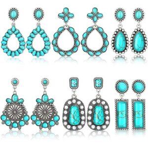 6 Pairs Turquoise Oval Earrings Faux Turquoise Boho Western Dangle Vintage