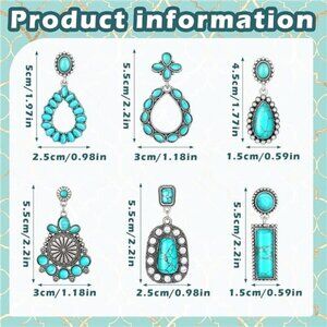 Enhance your accessory collection with this **6-pair turquoise earring set**, designed for those who adore bohemian elegance and artistic charm.