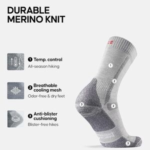 DANISH ENDURANCE Merino Wool Hiking Crew Socks for Men, Cushioned Anti-Blister, Breathable