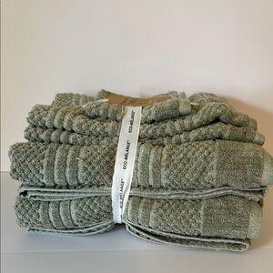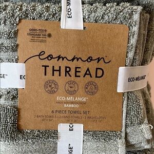 6 Pc Common Thread Eco-Melange Bamboo Towel Set Green Bath Hand Wash NEW