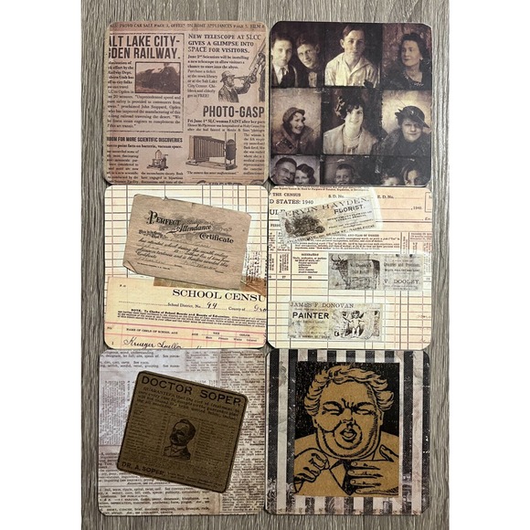 6 Pcs. Handmade Vintage Advertising Reproduction Laminated Drink Coasters