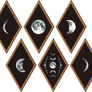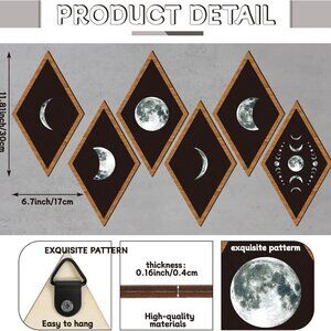 Available 6 Styles: what you will receive are 6 pieces of moon wall art, designed in 6 different patterns in the theme of moon, mainly colored in black and shaped in rhombus; Sufficient quantities and diverse styles could basically meet your home interior decoration needs