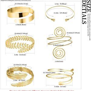 Features: This set includes 6 different minimalist upper arm bangles — from leaf and feather designs to wide bands and gothic styles. Hand-polished alloy with a smooth surface, comfortable, and easy to adjust for a perfect fit. Looks great whether you're dressing up for a party, photo shoot, or just want to elevate your everyday style.