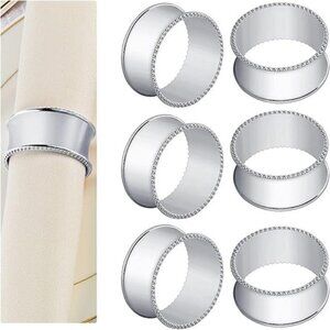 6 Pcs Stainless Steel Bead Side Napkin Rings Delicate Serviette Buckles (Silver)