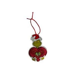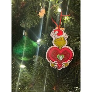 Add a playful twist to your holiday decor with these adorable Grinch-inspired ornaments! Perfect for fans of the classic holiday tale, these decorations bring festive mischief and charm to your Christmas tree. Each ornament features a Grinch character holding hearts and a delightful message, ideal for creating a whimsical holiday spirit.