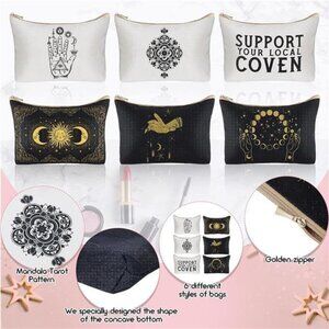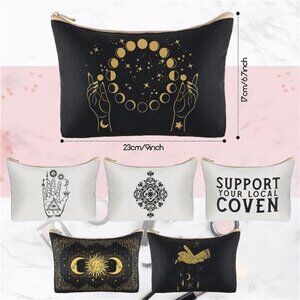 6 Pieces Gothic Moon Witch Tarot Toiletry Makeup Bags Zippered Cosmetics Bag