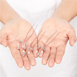 6 Pieces bridal hair pins pearl crystal hair accessory vintage wedding party hair pins for bride, bridesmaids, flower girls Features: Addition to wedding: The shiny crystal hair accessories are nice additions to bride's and flower girl's updo, will add the right amount of glitter and charm for your hair. Wide usages: Elegant pearl hair pins are delicate and beautiful, suitable for wedding, prom, party, dinner, dating, birthday, or other important occasions. Specification: Color: as pictures show Material: artificial pearl, artificial crystal, copper wire