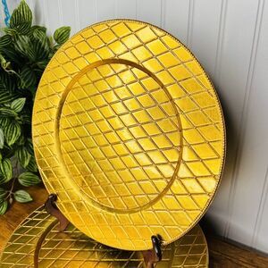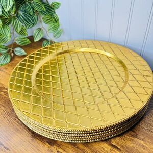 6 RARE Royal Gallery Gold Diamond Quilt Charger Plates 13” Lacquer Federated Dep