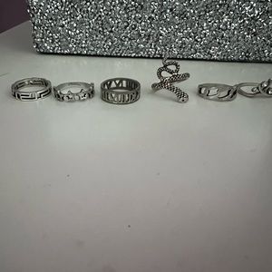 6 silver rings with designs for a special price of $4.00! Styles up any outfit !