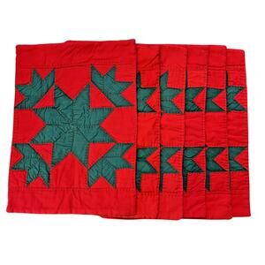 6 Red/Green Handmade Christmas Placemats Embroidered 18"x13" Holiday Decor