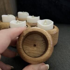 6 Round Wooden Finished Tea light Candle Holders Wood New