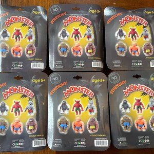You are buying this set of 6 Stretchy Monster stretchable figures! Made of soft and squishy rubber material, that stretches and jiggles. Just like the stretch Armstrong almost! These are Perfect for the horror and sci-fi creature genre, these stand at a height of 5 1/2 inches and come in their original unopened packaging. Packages have light to major shelf wear as these are heavy! If you are