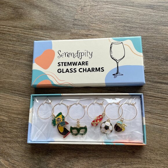 6 Serendipity Stemware Glass Charms - Carnival, Beach and Toucan $14