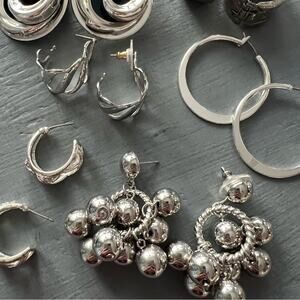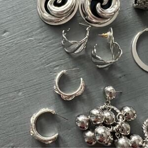 6 Silver Tone Earrings Set 2 pairs are clip On Preowned