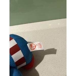 This is a 6-inch TY Beanie Baby of Captain America from the Marvel Avengers series. It is a small-sized plush toy made by Ty, a well-known brand in the stuffed animal industry. This particular Beanie Baby is in great shape and has been kept in top condition.