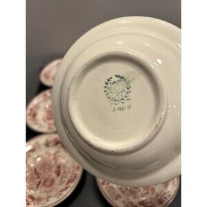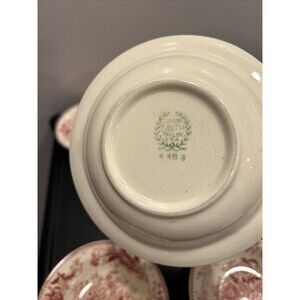 6 Taylor Smith Taylor Red Transferware Center Bouquet 5.25" Berry Dessert Bowls